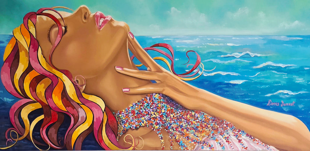 Un sentiment de liberté, de sérénité et de connexion profonde avec la nature qui semble se laisser emporter par le mouvement de l'océan, suggérant un moment de pur bonheur et d'abandon. / A feeling of freedom, serenity and deep connection with nature that seems to be carried away by the movement of the ocean, suggesting a moment of pure happiness and surrender.